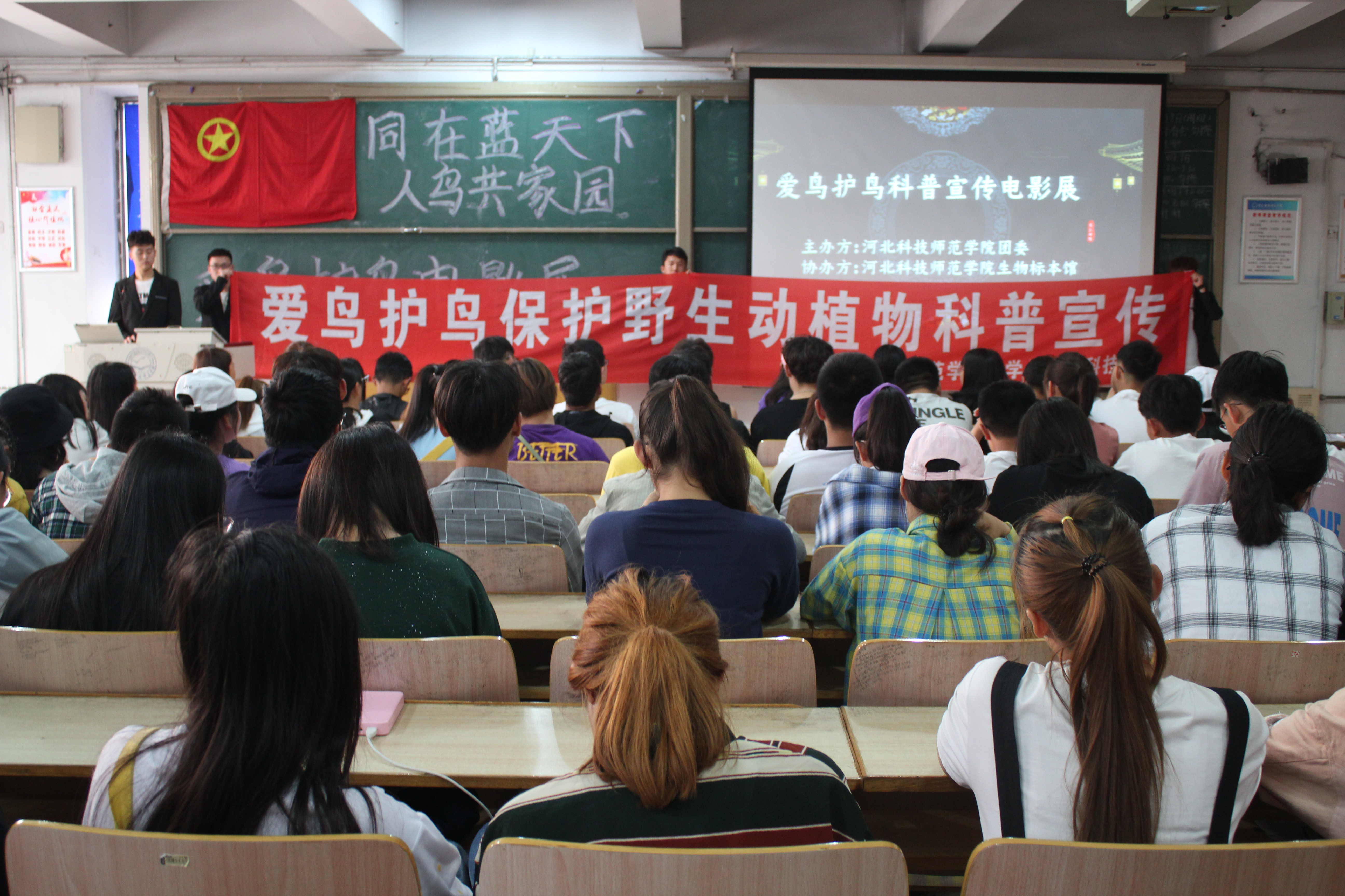 5月11日,由yl23455永利集团主办、学校生物标本馆承办的“同在蓝天下,人鸟共家园”鸟类电影展在昌黎校区热播,题材选自人文地理纪录片《人与自然》中以“保护鸟类”为主题的《鸟类生活》系列影片。100名来自相关专业的学生参加了观影活动。