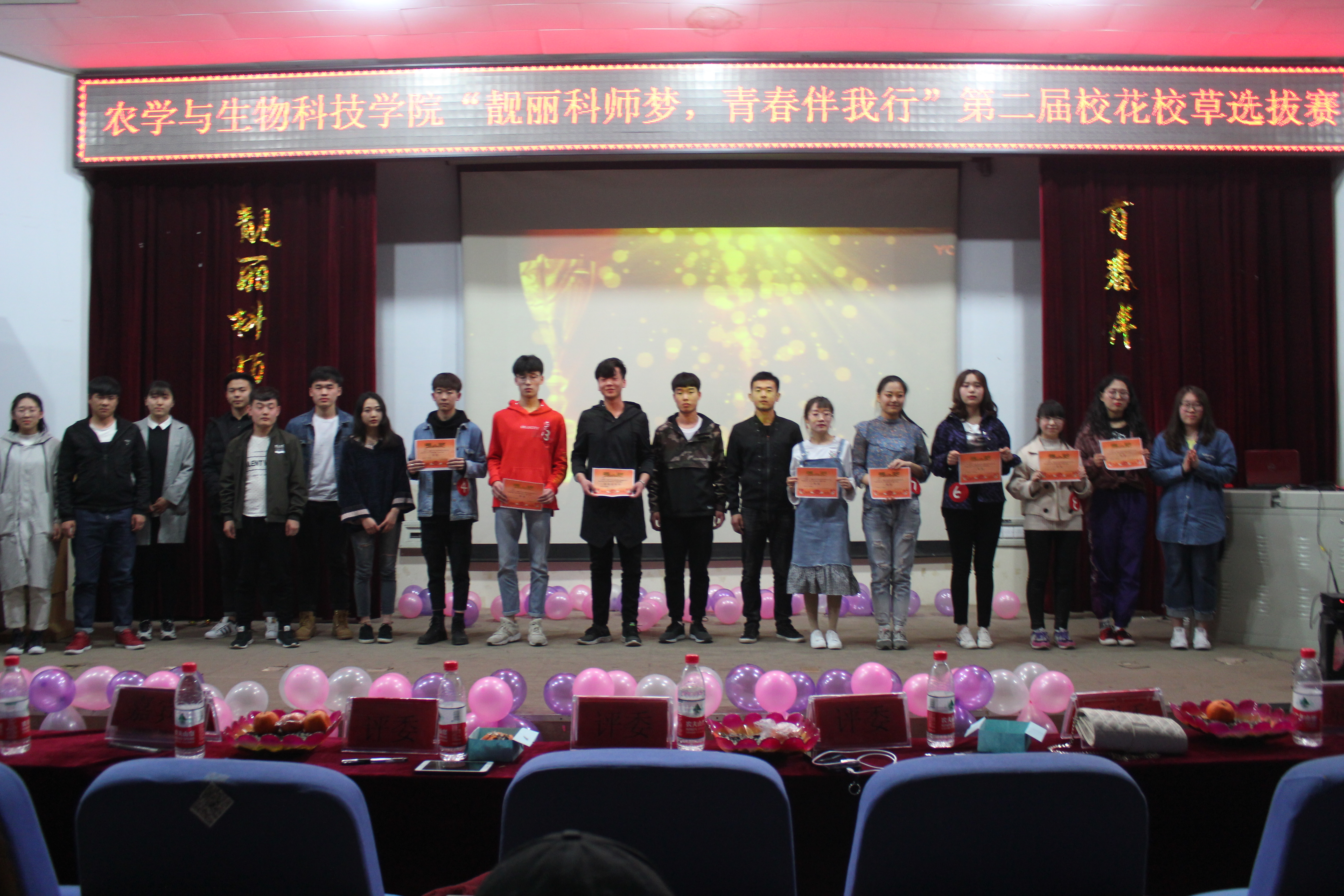 2018年4月15日,yl23455永利集团团委、学生会在昌黎校区学术报告厅举办了以“靓丽科师梦,青春伴我行”为主题的校花校草大赛初赛,有300名学生参加活动。