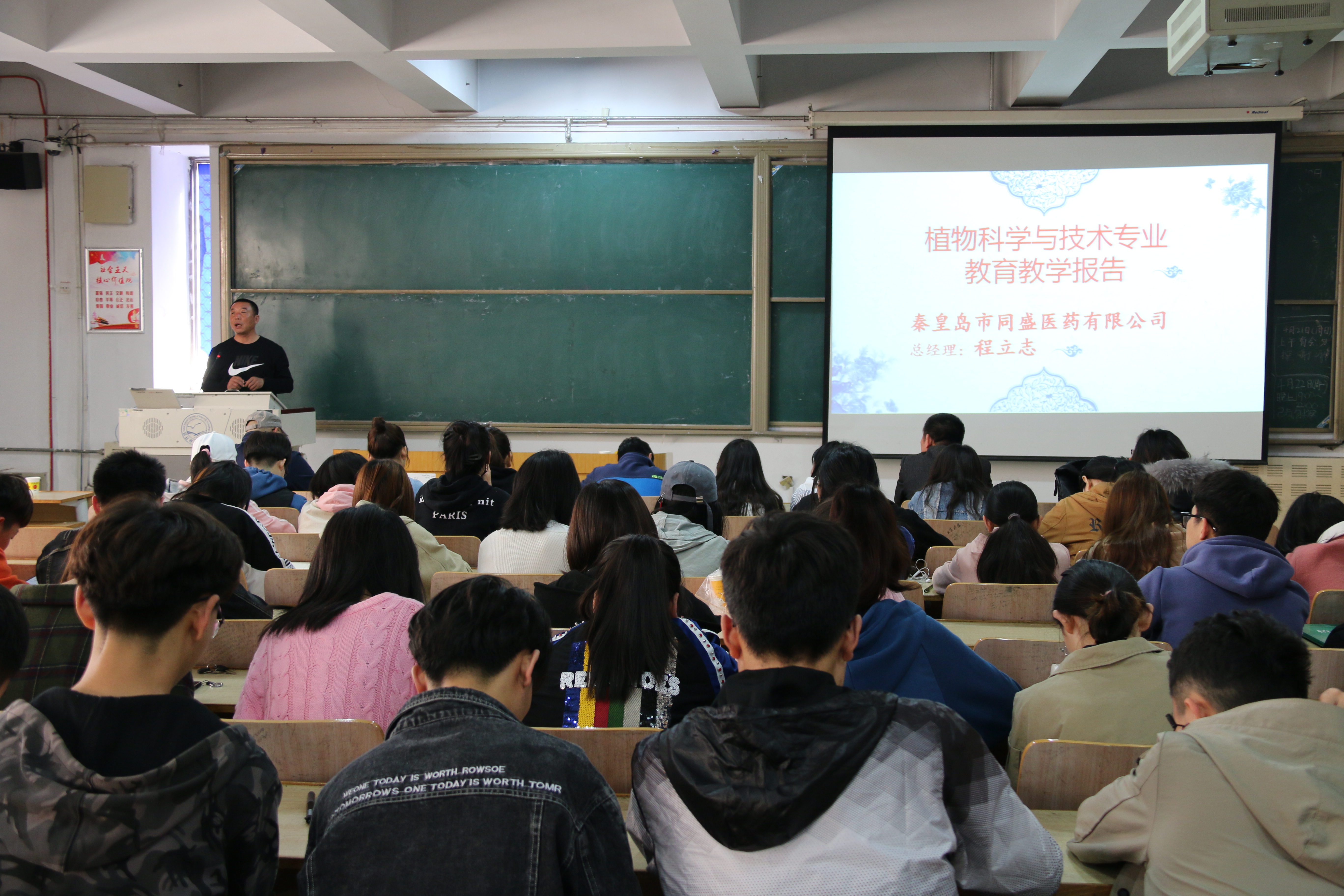 2019年4月21日,yl23455永利集团邀请秦皇岛市同盛医药有限公司总经理程立志来我校作题为“中药材发展与人才能力需求”的教育教学报告,植物科学与技术专业、植保专业200余名学生听取了报告。