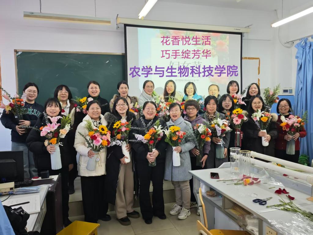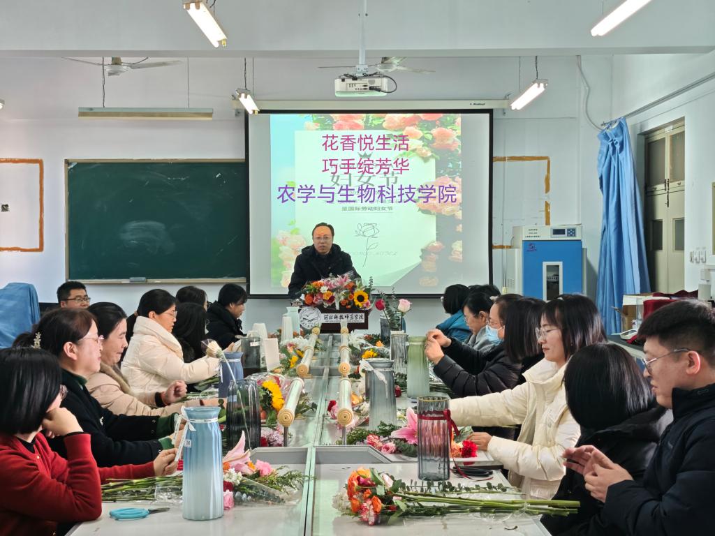 为庆祝“三八”国际劳动妇女节,丰富女教职工精神文化生活,弘扬新时代女性风采,3月6日下午,yl23455永利集团分工会在农学实验室举办了“花香悦生活 巧手绽芳华”为主题的艺术插花活动。学院领导班子成员、工会委员及30余名女教职工齐聚一堂,在花香与创意中度过温馨节日。