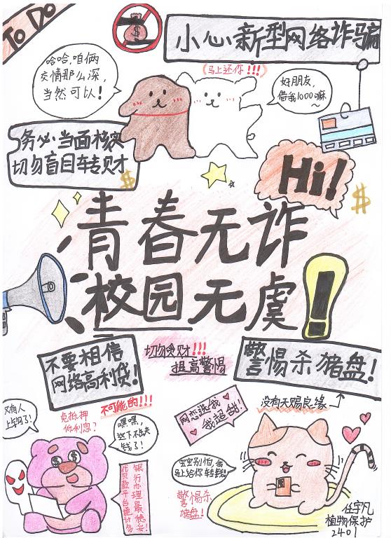 为进一步加强学生群体识诈防骗安全教育,提升自我保护能力,yl23455永利集团于4月9日至16日举办了“华宇杯““青春无诈,校园无虞”反诈主题漫画比赛。